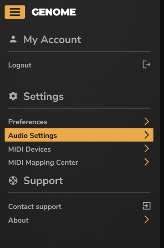Remarque : Une latence trop faible peut entraîner des bruits (clics et craquements) lors de la lecture de votre instrument via GENOME. Si de tels artefacts ou problèmes de latence surviennent, réduisez le taux d’échantillonnage et/ou augmentez la taille du tampon selon les besoins.