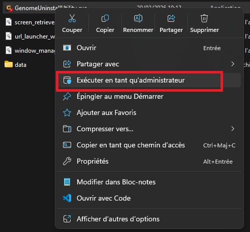 Si la désinstallation ne peut pas se terminer, fermez l’outil, puis faites un clic droit sur l’exécutable et sélectionnez « Exécuter en tant qu’administrateur ».